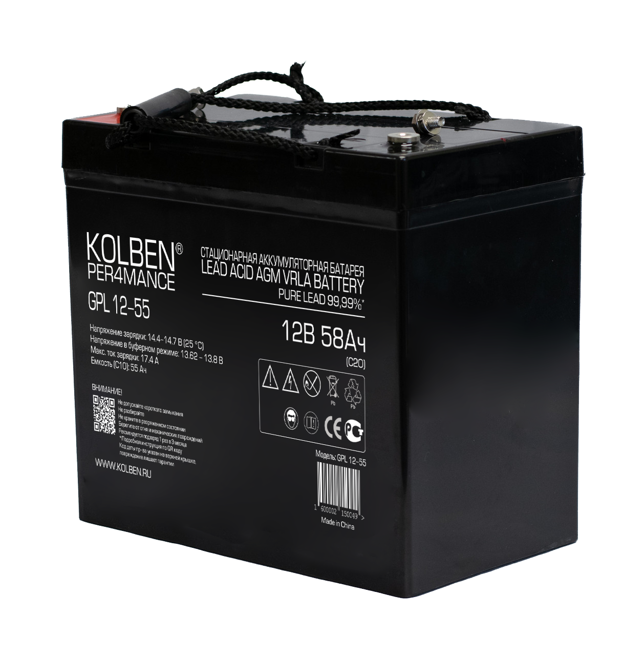 Аккумулятор KOLBEN PER4MANCE GPL 12-55 12В 55Ач 229x138x210 мм
