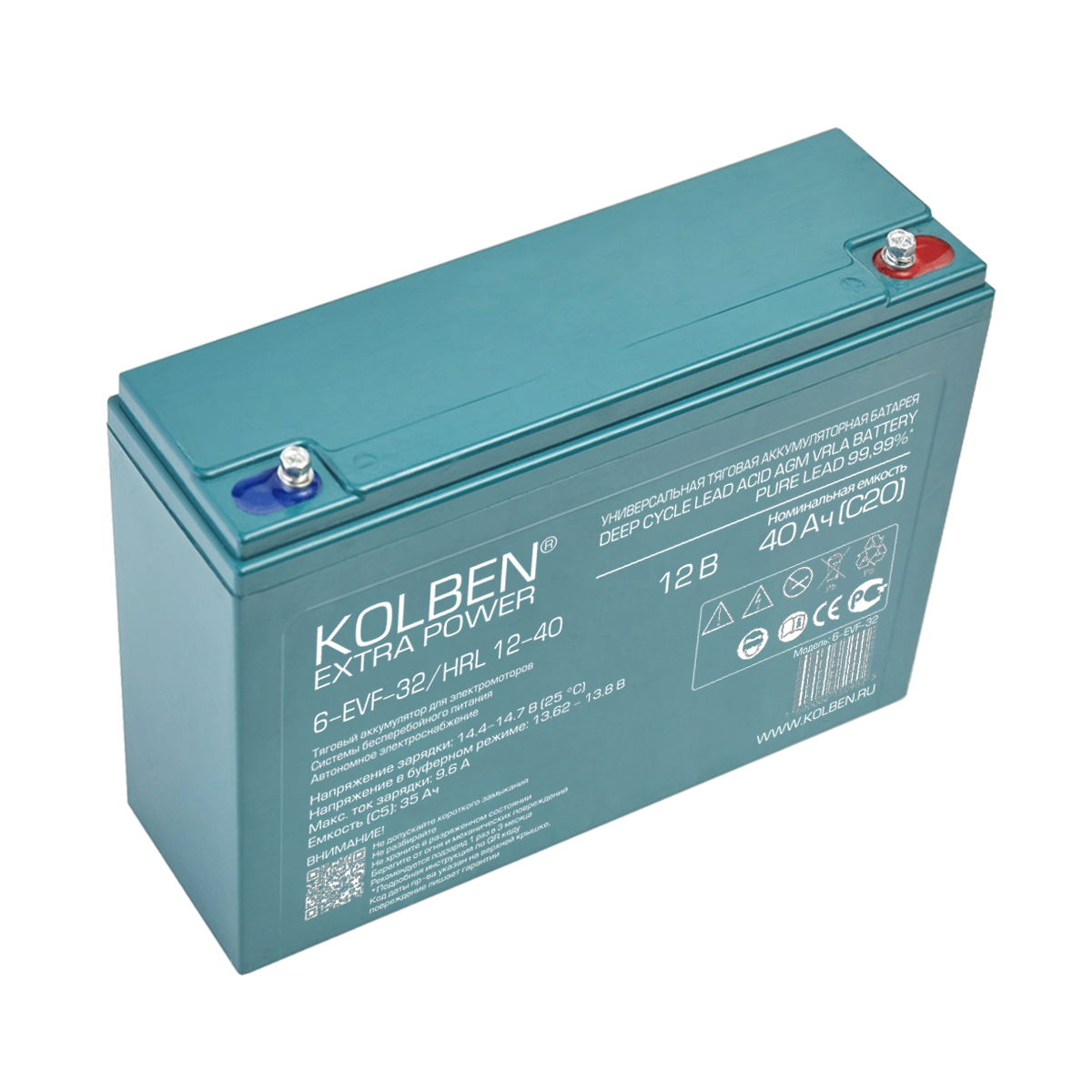 Аккумулятор KOLBEN 6-EVF-32 серии EXTRA POWER имеет универсальное применение, разработана для тяжелых условий эксплуатации, типовое назначение: тяговая батарея для электромоторов, батарея стартерно — тяговая для водного транспорта, батарея для системы бесперебойного питания, батарея для автономного электроснабжения, имеет срок службы до 10-12 лет или до 1600 циклов при разрядах DOD до 30% в источниках бесперебойного питания, в качестве тяговой / стартерной батареи или при глубоких разрядах имеет количество циклов до 600.